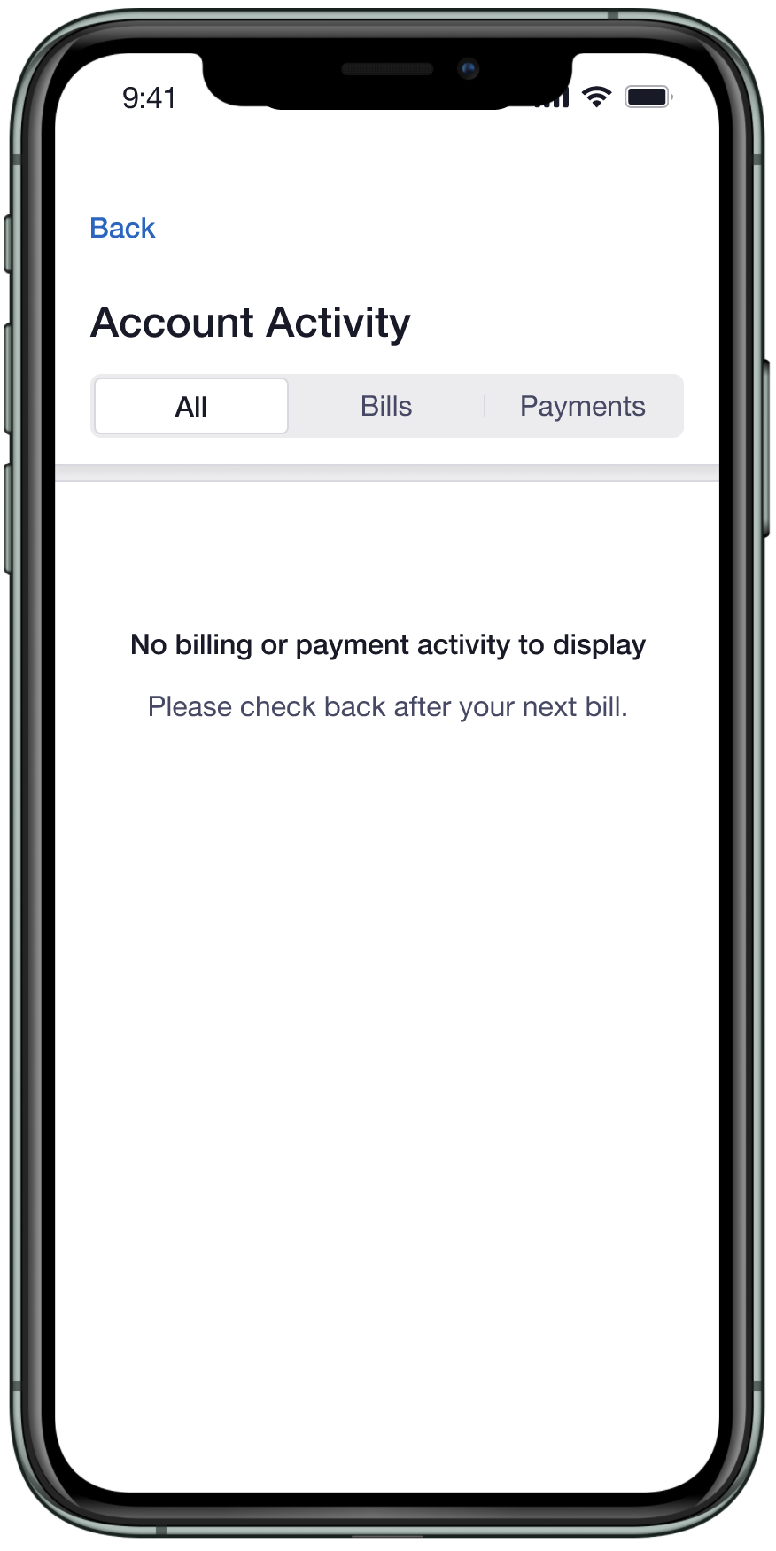 Single Account— Payments, Empty State